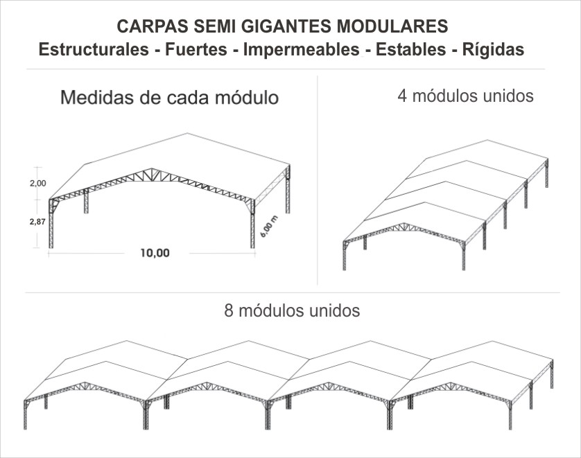 continua, (6 módulos) haciendo una sola carpa ¡SIN POSTES INTERMEDIOS!